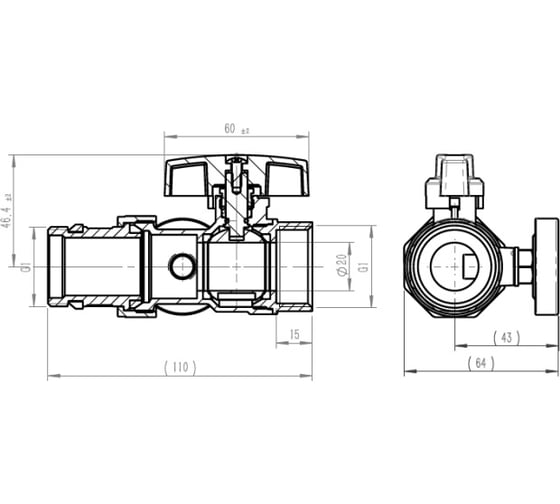 Шаровой кран со сгоном американка, бабочка ВН/НАР ДУ 20, 3/4″, MVI, BV.520.05