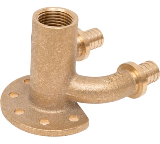 Колено имеет один вход, один выход и резьбовой выход 1/2″ на потребителя (точки водоразбора). Для удобства крепления на стену, водорозетка имеет монтажную площадку с отверстиями для крепежа.