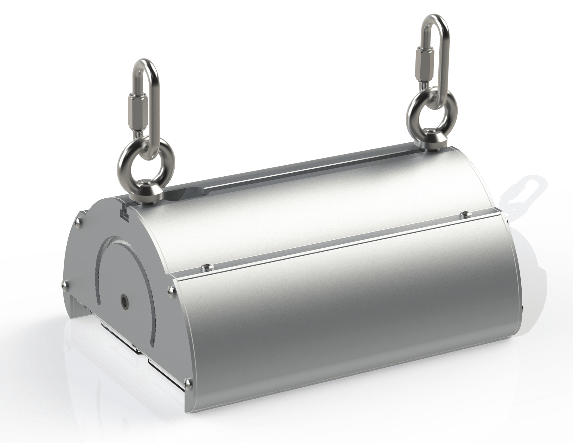 Кронштейн устанавливается в паз светильника и закрепляется с помощью гаек. Карабины позволяют закрепить светильник на вертикальный либо горизонтальный трос;