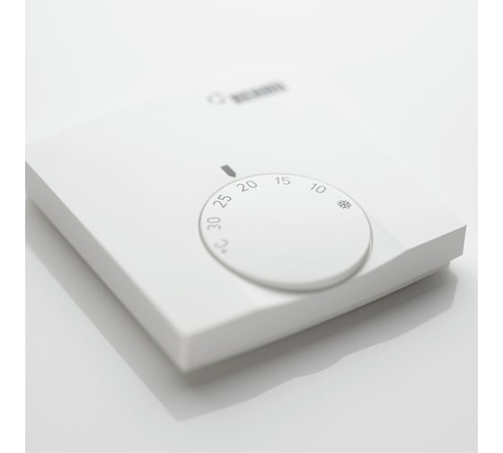 Терморегулятор имеет стильный, простой дизайн и монтируется к подрозетнику, расположенному под штукатуркой или на стене. Отличается надежной биметаллическим механизмом. Регулировка производится при помощи механического колесика.