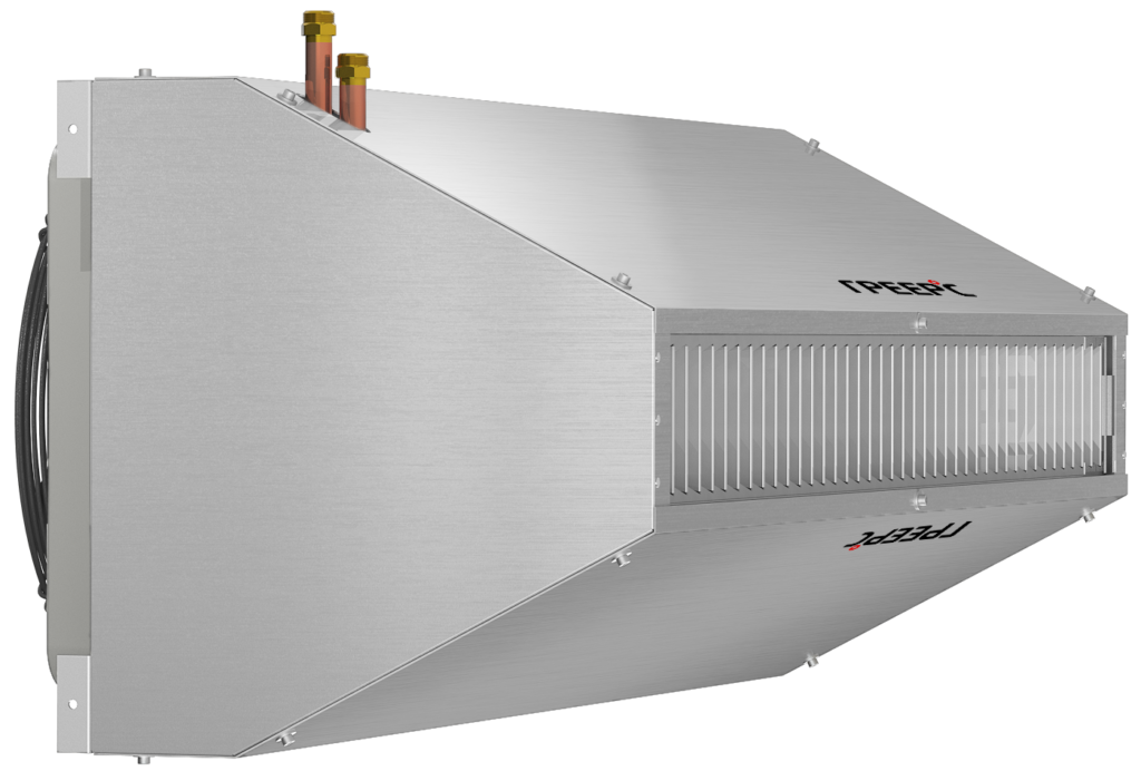 Промышленные воздушные завесы в моноблочном корпусе ГРЕЕРС ЗВП-М1-150В (водяные) предназначены для защиты помещений от потери или неконтролируемого притока тепла. Устанавливая их над дверным проемом, мы защищаем помещение от попадания холодного воздуха снаружи в зимний период или теплого воздуха в охлаждаемое помещение в летний период. Воздушные завесы ГРЕЕРС ЗВП-М в стандартном исполнении оснащены трёхскоростным вентилятором и монтажными креплениями. Эффективная длина струи — 4 метра.